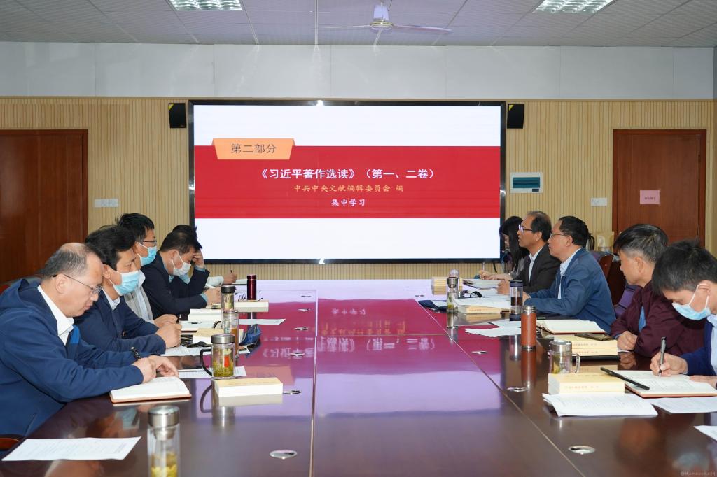 5月26日上午,陕西机电职业技术学院在蟠龙校区召开党委理论学习中心组(扩大)会议暨《习近平著作选读》第一卷、第二卷专题宣讲会,校党委书记伊逊智主持会议并讲授党课,全体中层以上领导干部参加。