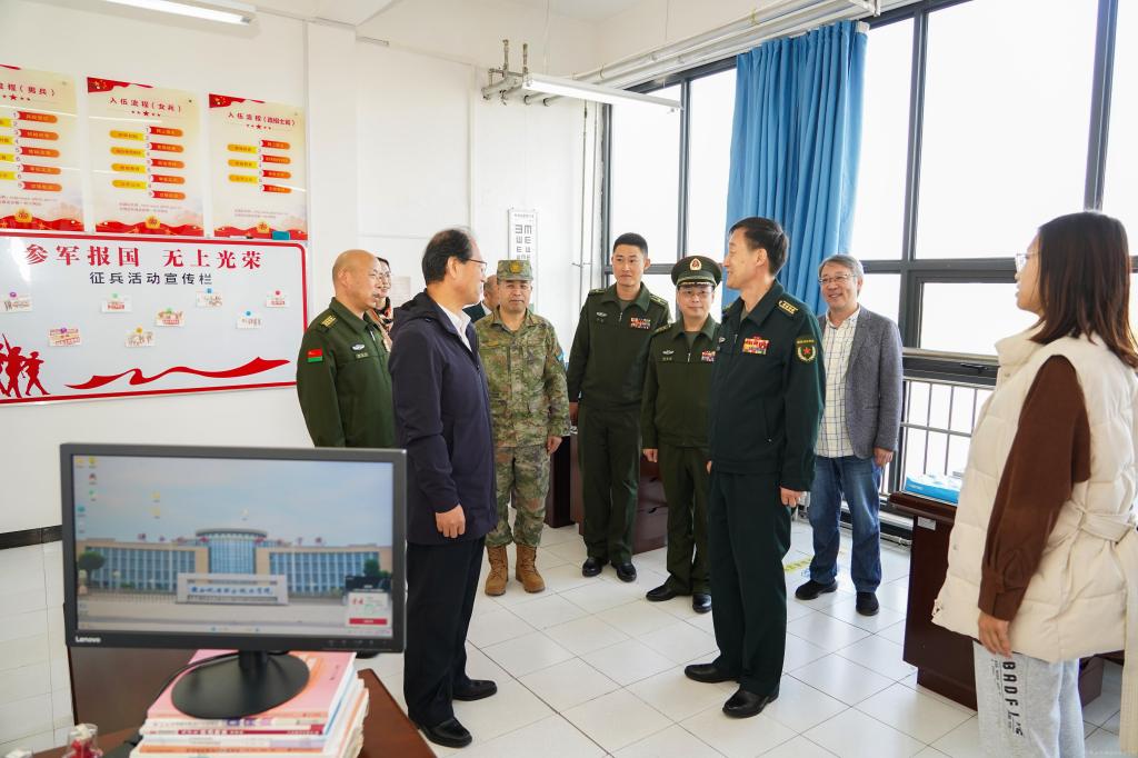 10月26日上午,宝鸡军分区司令员宋军政、副司令员杨红升、金台区人武部部长轩继东、政委宋景富等领导莅临我校检查指导工作,学校党委书记伊逊智,党委副书记张琴,党委学工部部长、学生处处长、人武部部长王建斌等陪同检查。
